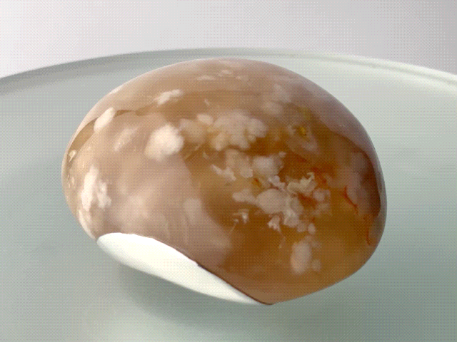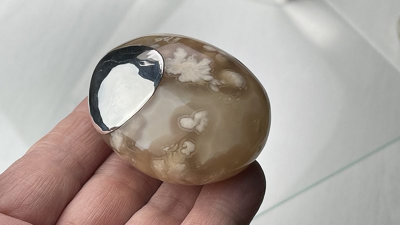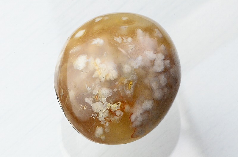 クォーツグループ(石英)の亜種と呼ばれるアゲート(瑪瑙)が時間をかけて固まっていく沈殿過程で、このような桜の花が咲いたように結晶模様ができあがるのですが、