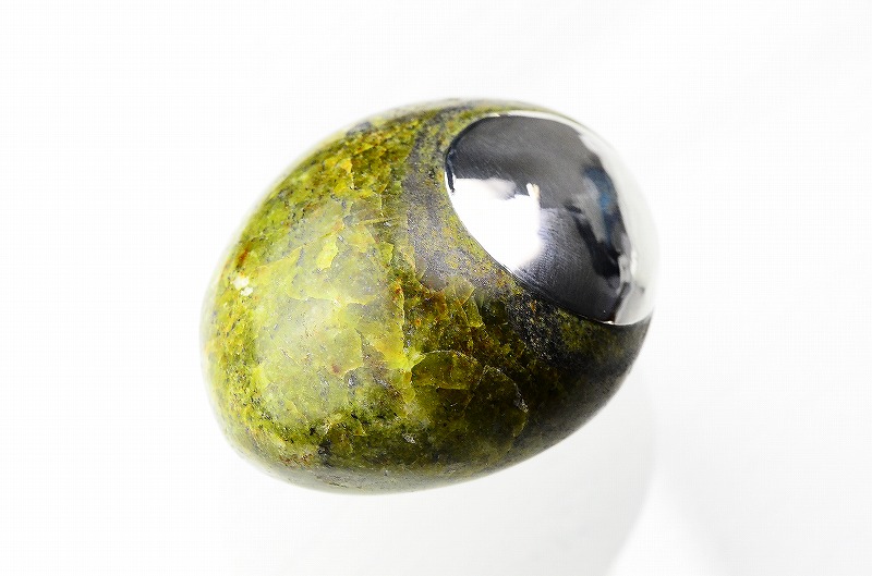 この緑色のオパールは他のオパールのように遊色を持たないオパール族の貴石です。